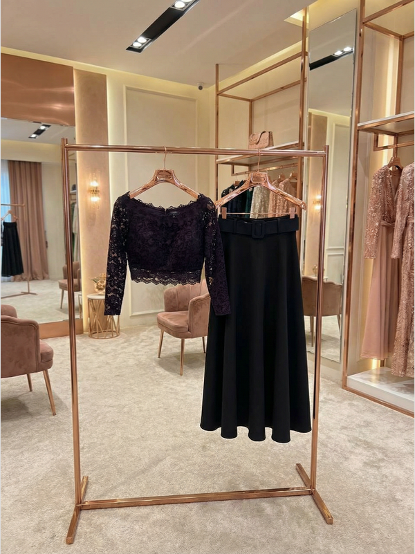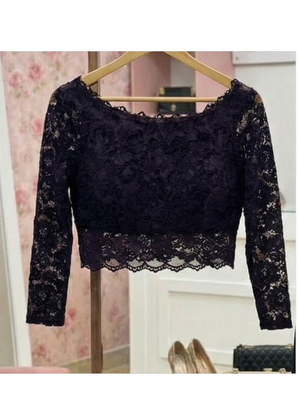 شومیز گیپور رنگ بنفش کاپ دار و دامن عروسکی +کمربند